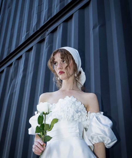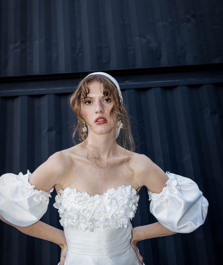 Çiçek İşlemeli Korse A Kesim Gelinliğin tül eteği arkasındaki fermuarlı sistemi sayesinde düğünün ilerleyen saatlerinde çıkarılabilir ve after party gelinliğine dönüştürülebilir şekilde tasarlanmıştır. Bu tasarım aynı zamanda farklı tipte duvaklarla kombinlenebilir.