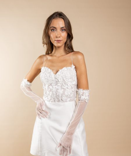 Işık Saten Eldiven zarif ve Vintage dokunuşuyla gelinliğinize ince bir detay katın. Online siparişle hemen elinize ulaşsın.